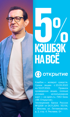 В банке Открытие можно получить 5% кэшбэк на всё в течение 3-х месяцев.