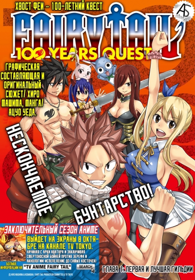 Продолжение популярной манги "Хвост Феи" или "Фейри Тейл", которая будет носить отдельное название "100 летний квест"! После победы над Зерефом нашу любимую, еще более сильную гильдию, ждет новое приключение! Не пропустите новые приключения популярных героев!
